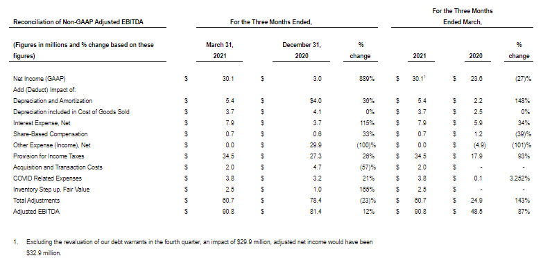 - Achieved record quarterly revenues of $193.8 million, a sequential increase of 15% over Q4 2020