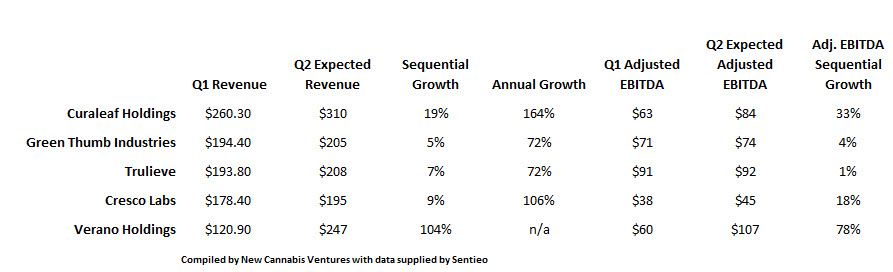 We are optimistic that the reports out of the U.S. will be strong and could attract investor attention. Here is how some of the largest MSOs are expected to report: