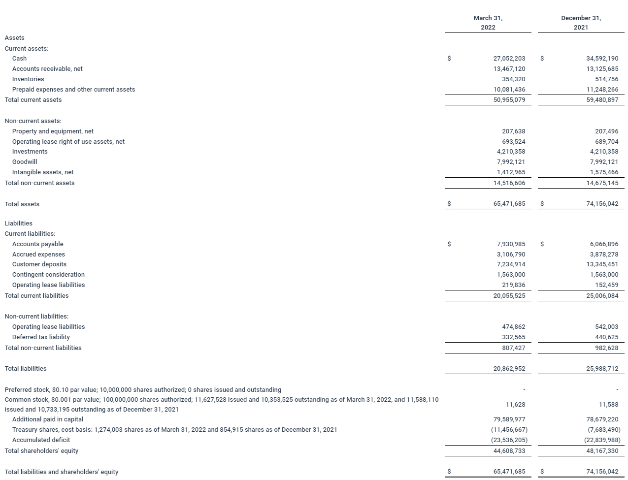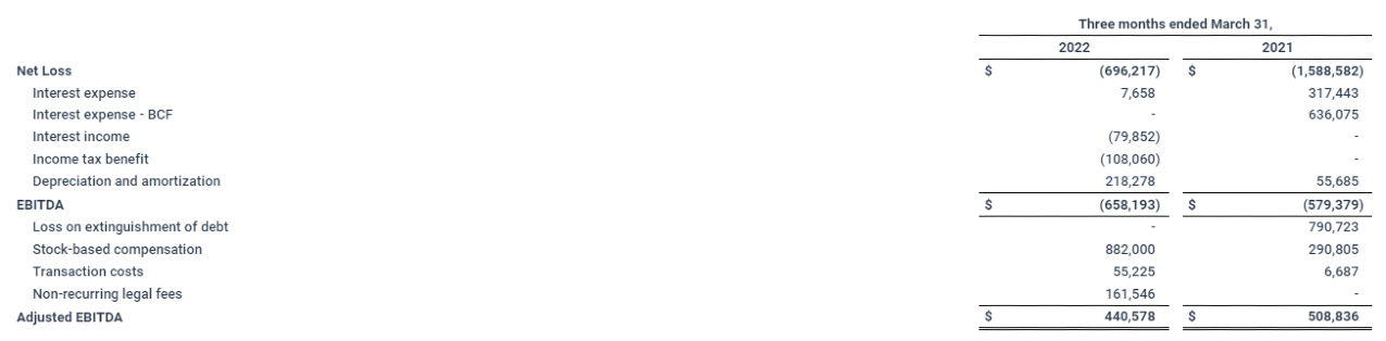 Adjusted EBITDA1 was $0.4 million in the first quarter of 2022, compared to $0.5 million in the prior year period. Adjusted EBITDA was driven by growth in gross profit, including the contribution from the acquisition of 2WR, and fully offset by strategic investments in operating expenses to drive growth.