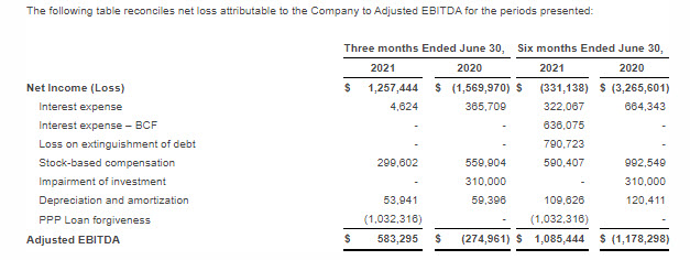 - Record Adjusted EBITDA of $0.6 million in Q2 2021 compared to $0.5 million in Q1 2021 and a negative ($0.3) million in Q2 2020