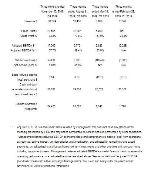 The Valens Company Reports Record Financial Performance in the Fourth Quarter and Fiscal Year Ended November 30, 2019 with Q4 Adjusted EBITDA(1) of $17.7 Million