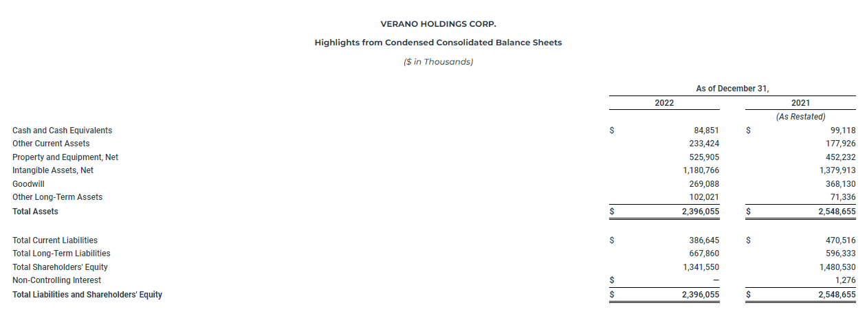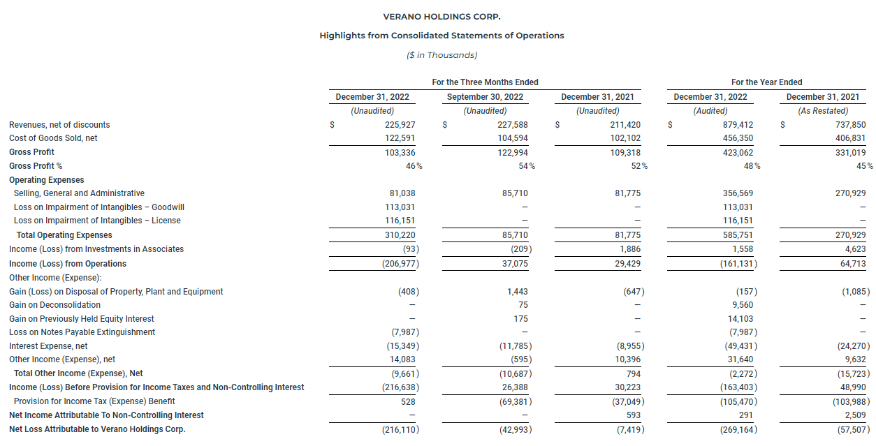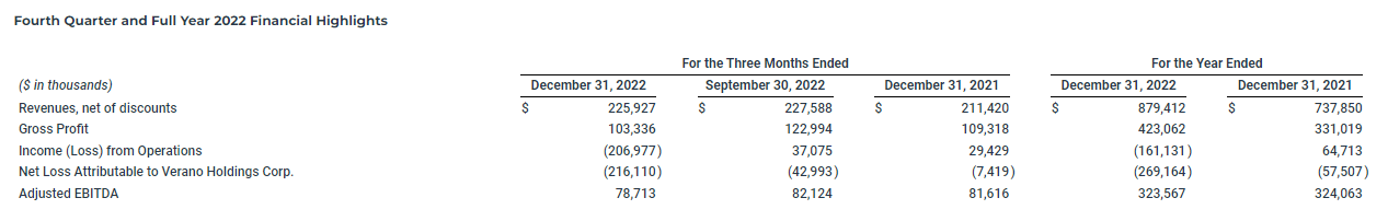 Verano Reports Fourth Quarter and Full Year 2022 Financial Results