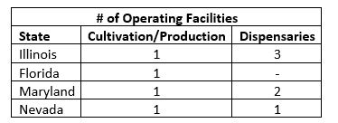 - The Illinois, Nevada and Maryland facilities are on track to more than double revenue in 2018 over 2017;