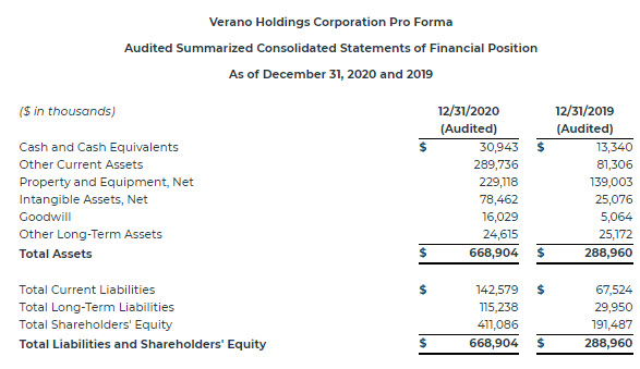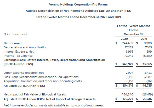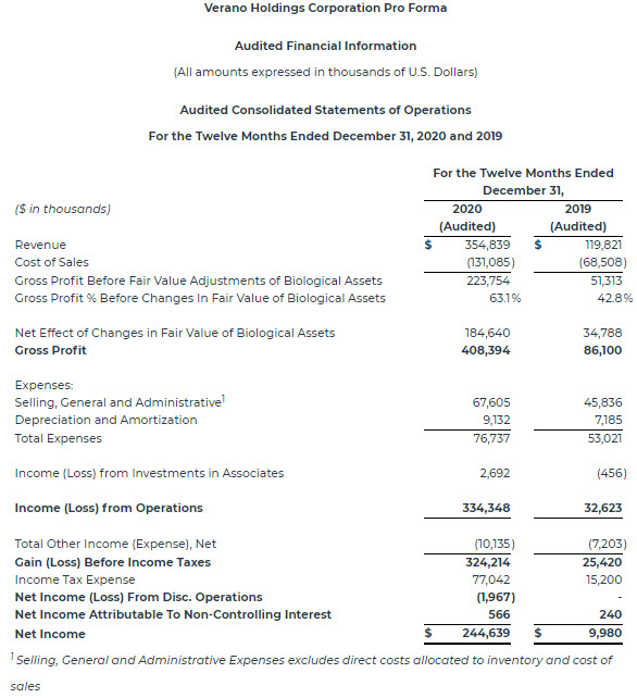 The financial information reported in this news release is based on the audited financial statements of Verano, Majesta and AltMed and the related management discussion and analysis (“MD&A”) for the year ended December 31, 2020 available under the Company’s profile on SEDAR at www.SEDAR.com. All financial information contained in this news release is qualified in its entirety with reference to such audited financial statements and the MD&A, which both were also filed on SEDAR in conjunction with this release.