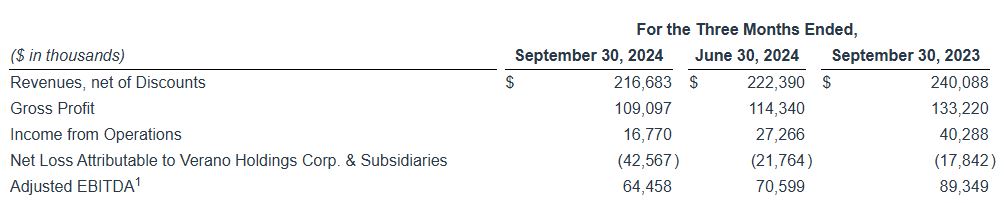 CHICAGO, Nov. 07, 2024 (GLOBE NEWSWIRE) — Verano Holdings Corp. (Cboe CA: VRNO) (OTCQX: VRNOF) (“Verano” or the “Company”), a leading multi-state cannabis company, today announced its financial results for the third quarter ended September 30, 2024, which were prepared in accordance with U.S. Generally Accepted Accounting Principles (“U.S. GAAP”).