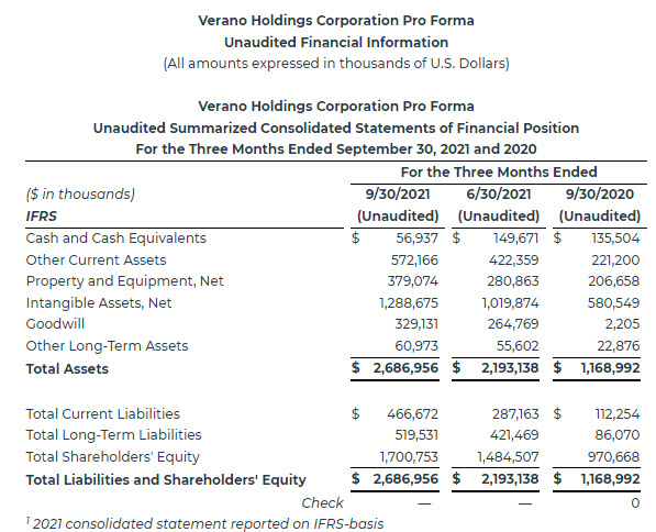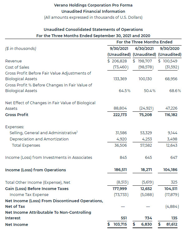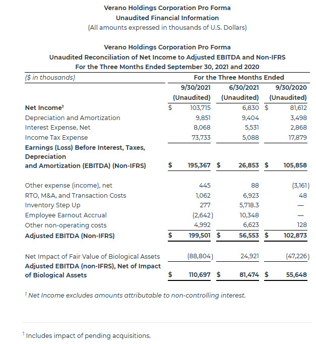 The financial information reported in this news release is based on the unaudited consolidated financial statements of Verano Holdings Corp. and the related management discussion and analysis (“MD&A”) for the three and nine months ended September 30, 2021, both of which are available under the Company’s profile on SEDAR at www.SEDAR.com. All financial information contained in this news release is qualified in its entirety with reference to such financial statements and MD&A.