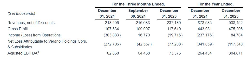 Verano Announces Fourth Quarter and Full Year 2024 Financial Results