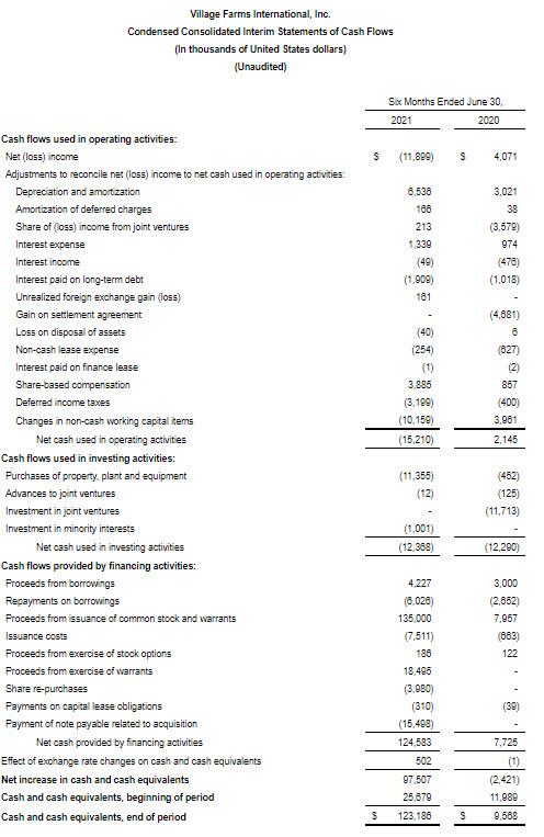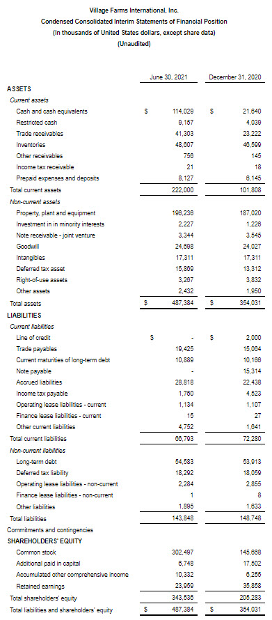 This press release is intended to be read in conjunction with the Company’s Consolidated Financial Statements (“Financial Statements”) and Management’s Discussion & Analysis (“MD&A”) for the three and six months ended June 30, 2021 in the Company Form 10-Q, which will be filed on (www.sec.gov/edgar.shtml) and SEDAR (www.sedar.com) and will be available at www.villagefarms.com
