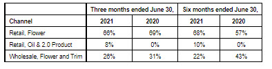 - Was the top-selling brand* of dried flower products with the Ontario Cannabis Store (“OCS”) (by kilograms sold and dollars sold) for the quarter ended June 30, 2021 and remained the top-selling brand of dried flower products with the OCS (by kilograms sold and dollars sold) for the 21-month period since its retail branded sales launch in October 2019;
