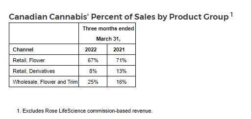 - Rose launched 14 new cannabis SKUs and shipments of own brands increased 85% compared to the fourth quarter of 2021.