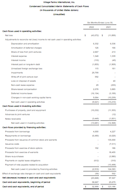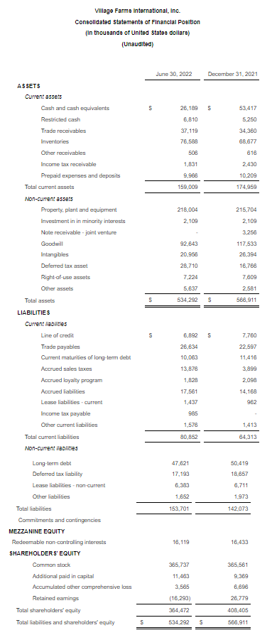This press release is intended to be read in conjunction with the Company’s Consolidated Financial Statements (“Financial Statements”) and Management’s Discussion & Analysis (“MD&A”) for the three and six months ended June 30, 2022 in the Quarterly Report, which will be filed on (www.sec.gov/edgar.shtml) and SEDAR (www.sedar.com) and will be available at www.villagefarms.com.