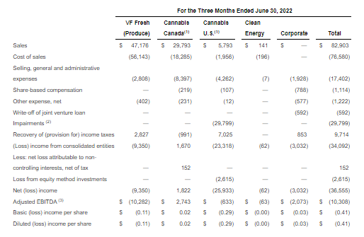 “We continue to expect the second half of 2022 to trend favourably for our Canadian Cannabis business, as we launch new SKUs, including new strains, across our brands into a market that continues to exhibit robust growth. In addition, the roll out of the Original Fraser Valley Weed Co. brand will enable us to address a considerable portion of the Canadian market that we previously did not. We also expect to increasingly benefit from integrating Pure Sunfarms and Rose to realize the significant synergistic opportunities that can take Village Farms’ Canadian Cannabis business to the next level.”