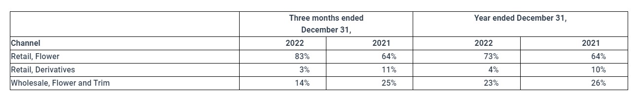 - Canadian Cannabis retail branded sales increased 25% year-over-year (fourth quarter), and 25% for the full 2022 year;