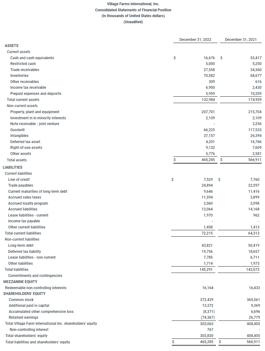 Village Farms International Reports Fourth Quarter 2022 Financial Results