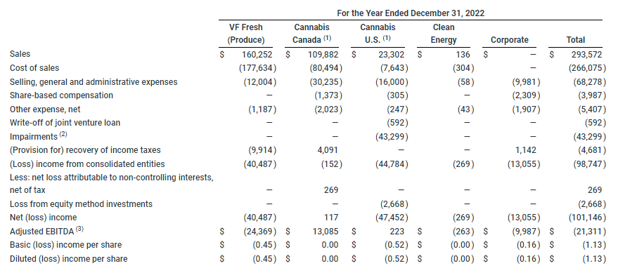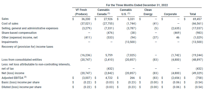 “In our Fresh Produce business, we again reduced the adjusted EBITDA loss during the fourth quarter, driven by improvements in our Texas operations. The Fresh Produce business remains strategic for Village Farms and our customers, and it must return to profitability. Following a comprehensive review of our operations, we have initiated a multi-part plan, including technology and operational enhancements, as well as the decision to divest our Permian Basin facility, which we view as non-strategic for our long-term optimized Fresh strategy or a longer-term Texas-based and national legal cannabis market. We are confident these initiatives, in aggregate, combined with an improving macro environment compared with that of 2022, will contribute to substantially improved financial performance from Fresh Produce in 2023.”