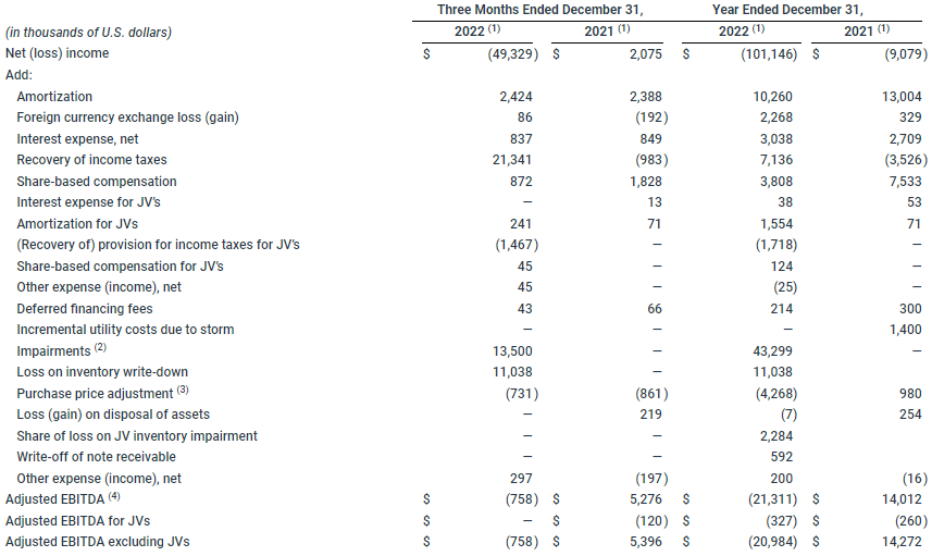 - Adjusted EBITDA was negative ($3.0 million) compared with positive $1.2 million. Adjusted EBITDA for the fourth quarter was a sequential improvement over negative ($4.9 million) reported for the third quarter of 2022. Adjusted EBITDA for the second half of 2022 improved to negative ($7.9) from negative ($15.1 million) for the first half of 2022.