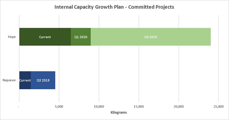 In March 2019, Canna Farms, located in Hope, B.C., received Health Canada approval for the expansion of its Yale Road facility. Over 30,000 clones have been propagated to fill the space, which is expected to result in over 3,000 kilograms of additional annual production capacity – doubling the previous capacity in B.C. Canna Farms also recently received municipal approval for the construction of Phase 5 of its facility, which, following its expected completion in Q1 2020 and the receipt of Health Canada approval, is expected to result in additional internal annual production capacity of 2,500 kilograms.