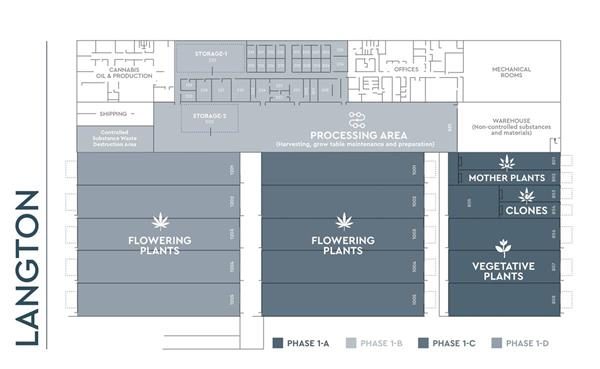 The Company is now completing a third harvest at its new facility in Langton, ON, Canada, with licenses for cultivation and business to business sales received in April 2018 and December 2018 respectively. The Company, in partnership with Industrial Automation Solutions (IAS New York Inc.), of Rochester NY, and their partner Rockwell Automation, have completed a proof of concept (“POC”) for both the facility and automation platform. Average yields from such POCs, among three different strains are 50 grams per plant. The cultivation concept has been modified to a Screen of Green where greater plant density and thereby greater yield is achievable per square foot at the facilities. Throughout these POCs, each cultivation period totaled 17 weeks from start to finish (the “Periods”). These Periods consist of ten (10) days for clones to root, 5 weeks for vegetation to complete and 11 weeks for the flower cycle prior to harvesting. All stages of cultivation were completed in the same rooms, demonstrating the facility’s versatility to conduct every stage of cultivation in each room. As the plants on average produced 50 grams per plant, with 9,000 plants in 8,800 sq. ft rooms annual production average for flowering areas is now 286 grams per sq. ft. per year. The POCs have demonstrated that on an annualized basis, the Company’s Langton facility, once fully licensed for Phase 1-A through Phase 1-D (set out in Graphic 1 below), will be able to produce 23,731 kg of dry cannabis flowers to be used in the production and sale of packaged dry flower and cannabis oil. It is expected that with further phenotyping of genetics, in addition to nutrient optimization, such yields will continue to increase.