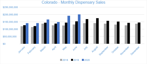 During June, the tenth month after the onset of the vaping crisis and the fourth month of the pandemic impacting the market, sales across the five markets totaled $751.1 million, up 2% from May, which followed a sequential increase of 14% in April. March had spiked to $666.0 million from $579.9 million in February as customers purchased cannabis ahead of store closures and concerns about limitations on access, so clearly cannabis sales are back on track. A rebound in Nevada of 15% from May helped offset some modest sequential declines in Arizona and Oregon, which have been the fastest growing markets. Additionally, June had one less day than May, and sales may have been impacted to some degree by the social unrest during the month.