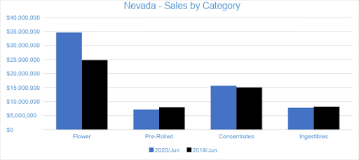 In June, Nevada dispensaries generated $66.8 million in sales. Compared to June of 2019, sales grew by 15 percent. Compared to the trailing month, sales also increased by 15 percent. Year-to-date through June, sales in the market have reached $340 million, growing by nearly one percent compared to the same period last year.