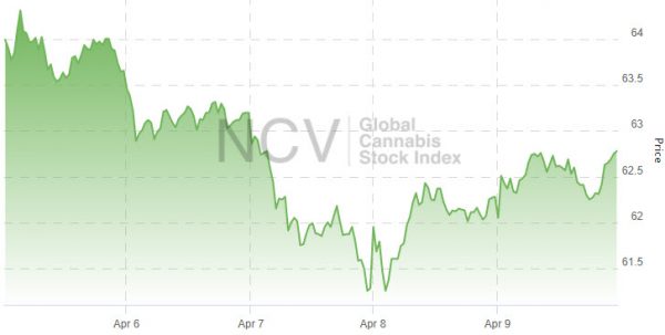 The Global Cannabis Stock Index extended its decline since mid-February modestly this week, ending at 62.78, down 0.8%: