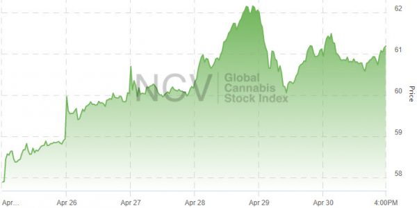 The Global Cannabis Stock Index moved higher for the second consecutive week to end at61.19, up 3.8%: